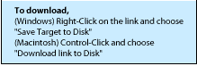 To download, (Windows) Right-Click on the link and choose "Save Target to Disk" (Macintosh) Control-Click and choose "Download link to Disk"
